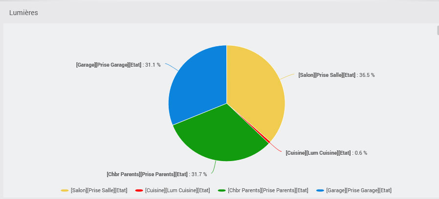 On peut mettre aussi bien des tuiles d’équipements, des graphiques (qui peuvent être composés de plusieurs données) ou des zones tableau (qui contiennent les widgets des commandes).
